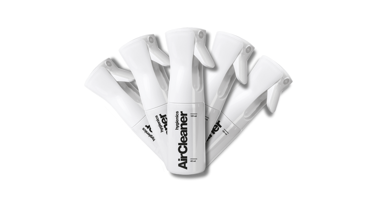 Kaufe eine Flasche von unserem AirCleaner und erhalte daraus 5 gebrauchsfertige Sprühflaschen, mit je 150 Sprühstöße pro Sprühflasche!